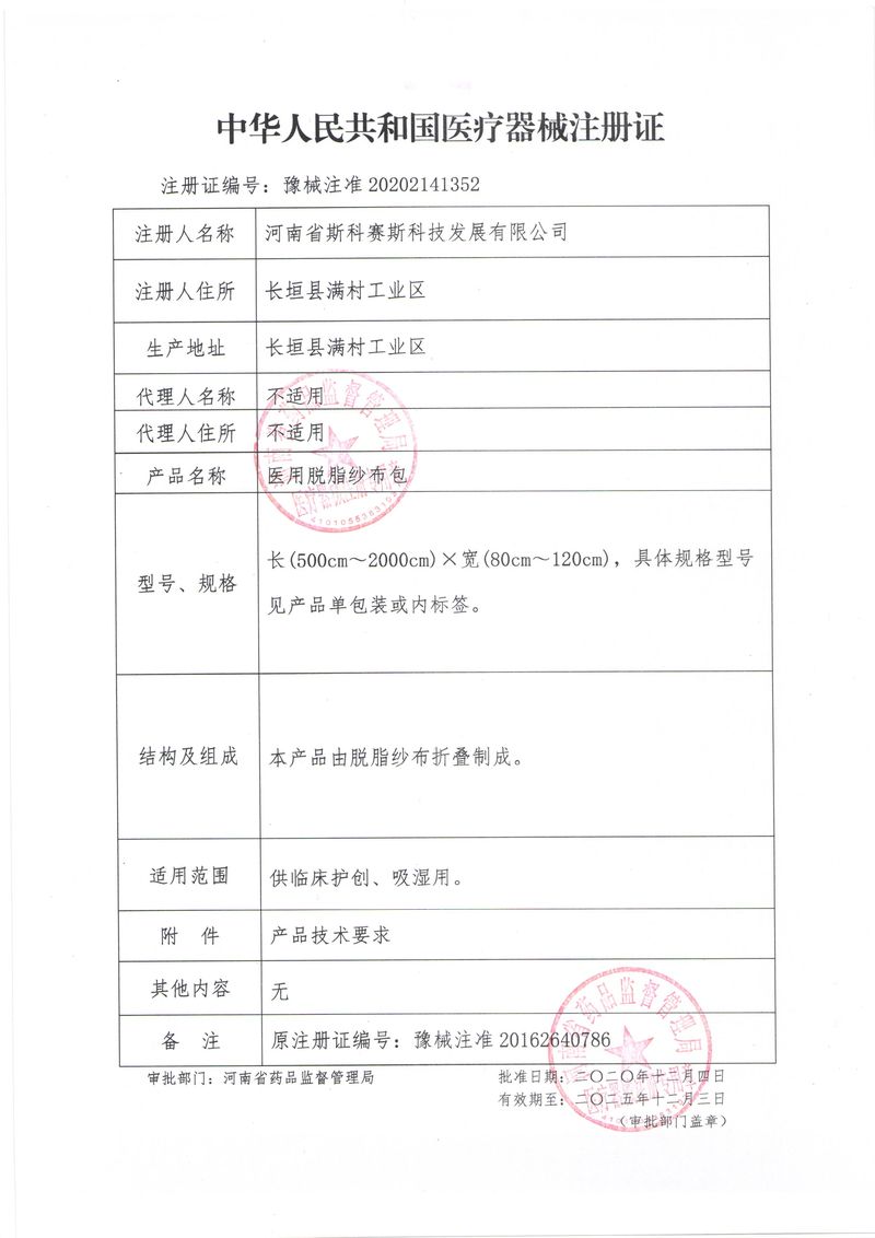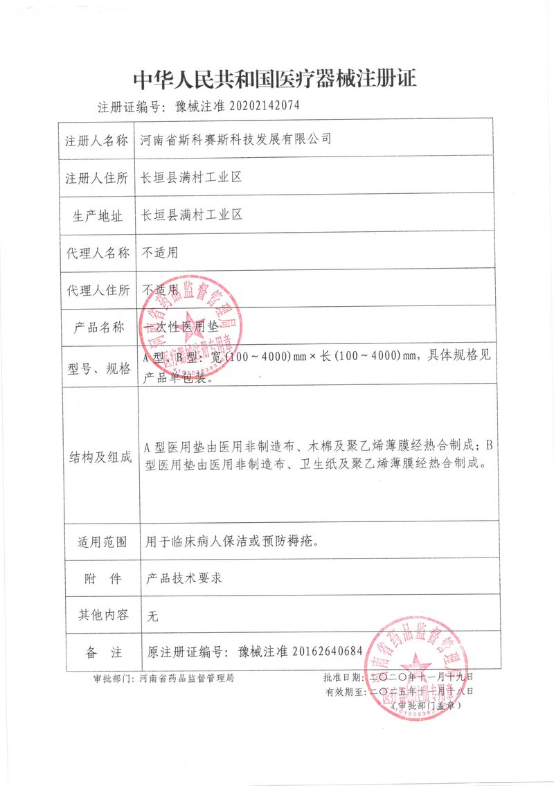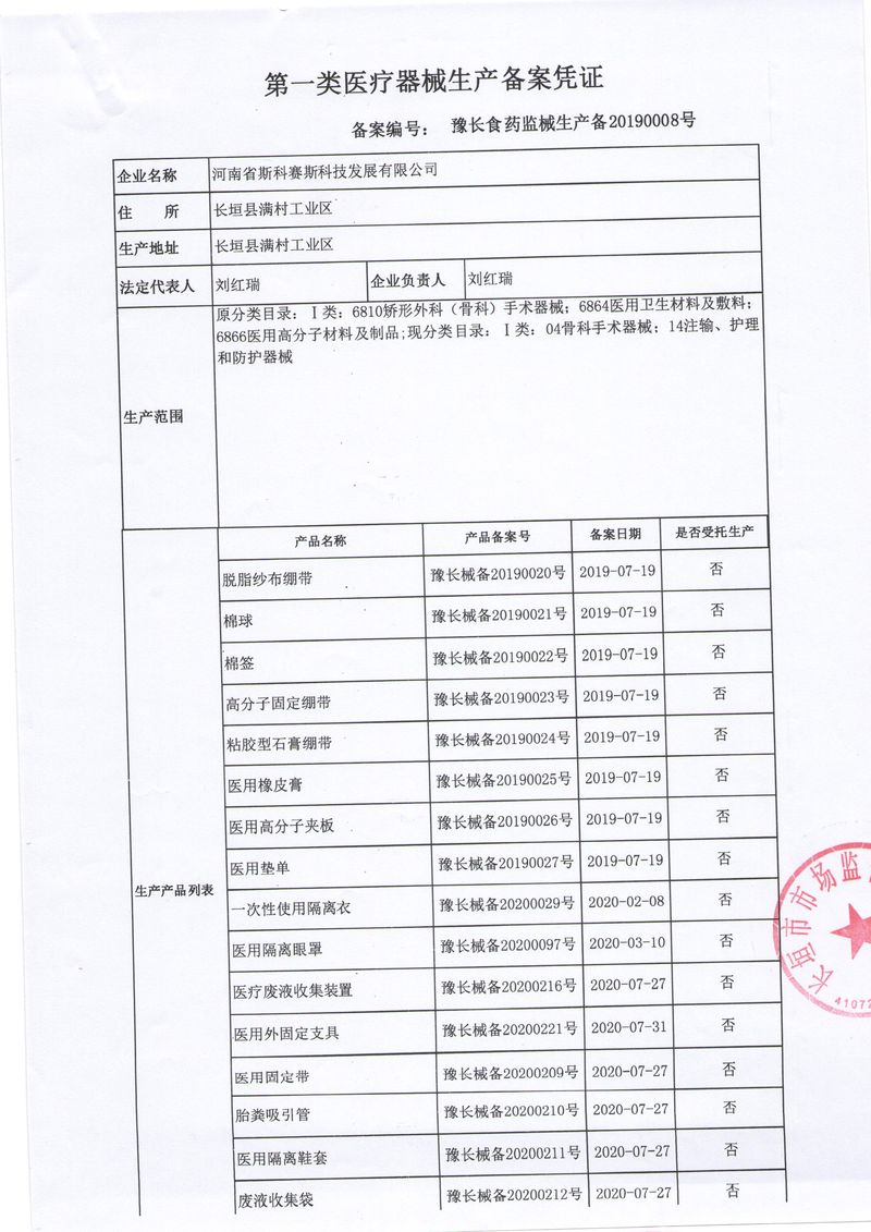 河南省斯科賽斯科技發(fā)展有限公司創(chuàng)建于 2011 年,位于“中國醫(yī)療耗材之都”- 河南省長垣縣,西臨 308 省道,南靠新菏鐵路,北依長濟高速,交通便捷,經(jīng)濟發(fā)達,環(huán)境優(yōu)美。斯科賽斯積極進入醫(yī)療健康和服務領域,秉承為用戶創(chuàng)造價值的理念,專注于醫(yī)用耗材解決方案的研發(fā)和運營,并為用戶提供完善的產(chǎn)品解決方案;  斯科賽斯主要生產(chǎn)醫(yī)用麻醉系列、醫(yī)用高分子系列、醫(yī)用敷料包系列、醫(yī)用無紡布系列、醫(yī)用防護系列、醫(yī)用脫脂棉系列、生物材料制品類等七大類、100 多個品種、400 多個規(guī)格的產(chǎn)品。公司占地面積約 30000 平方米,建筑面積20000 平方米,擁有 10 萬級的凈化車間總面積 10000 平方米。擁有國際先進水平的生產(chǎn)設備和檢測儀器,技術裝備精良,檢測手段完善,為醫(yī)療行業(yè)的不斷發(fā)展進步提供保障。公司順利通過 ISO9001、ISO13485 質(zhì)量管理體系認證。  斯科賽斯堅持研發(fā)高科技新產(chǎn)品,力爭在醫(yī)療器械關鍵領域取得技術和研發(fā)的重大突破;立足國內(nèi)和國際兩個市場,逐步實現(xiàn)管理理念、經(jīng)營機制、人力資源、技術、產(chǎn)品、市場等全方位對接,提高企業(yè)的核心競爭力;過去的歲月里,斯科賽斯砥礪前行,誠信務實,銳意進取,不斷創(chuàng)新,用自己的睿智和辛勞,以富有責任感的使命,在探索中追求,在追求中超越,致力于成為值得信賴的醫(yī)療用品生產(chǎn)企業(yè)!在未來的日子里,斯科賽斯將一如既往豪情滿懷,信心百倍,攜手并肩,執(zhí)著追求,向更高的的目標前進,鑄造新的輝煌!